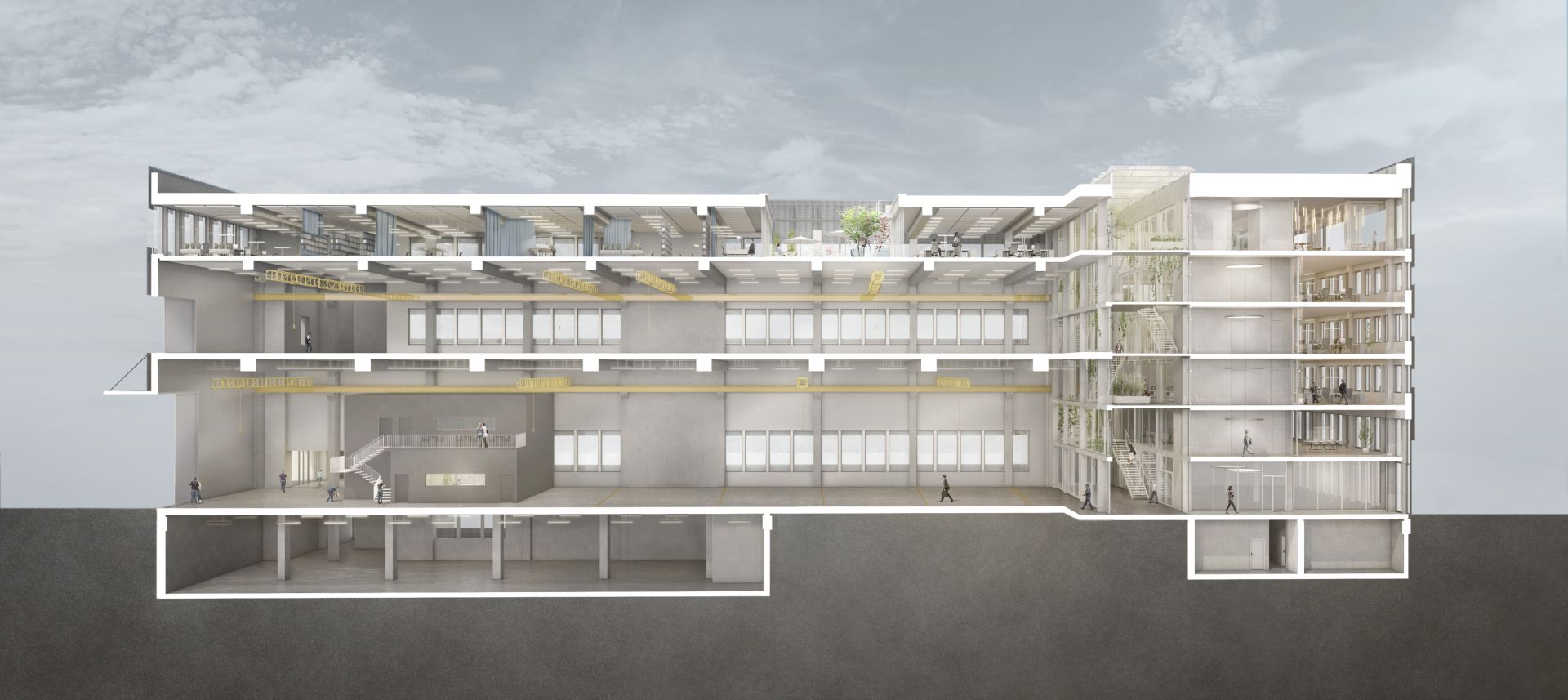 Das Teilprojekt 1 umfasst die Fertigungshalle und die Bereiche Haustechnik, Krananlagen und Medienerschliessung für die Maschinen. Das Teilprojekt 2 umfasst den Bürotrakt.